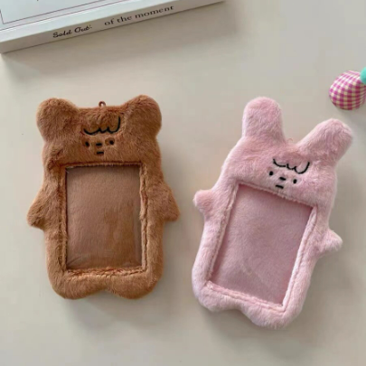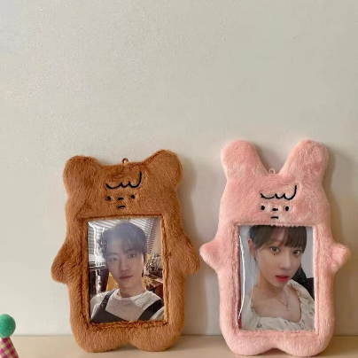KPop Cute Plush Bear Bunny Photocard Holder with keychain BusID & Polaroids (3 inch)