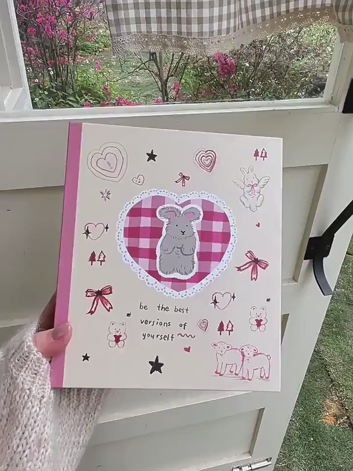 This product features a cute bunny and retro heart bow design on its hard cover, making it a fashionable choice for holding your photocard collection. With a 6 ring bunny planner and a clear jelly glitter cover sheet, this A5 composition binder is both stylish and functional.