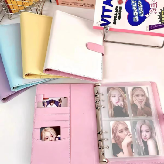 A5 Leather Kpop Photocard Binder with Side Pockets+20 Refill Pages Pocket