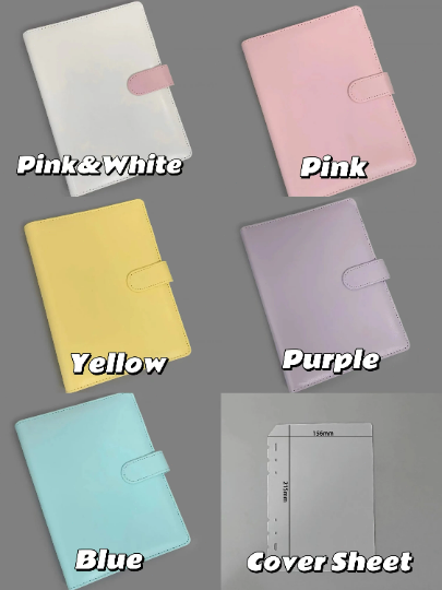 A5 Leather Kpop Photocard Binder Candy Colors Pink Violet Binder + 20 Refill Pages Pocket | Instax Polaroids Journal Scrapbook Organizer BTS