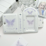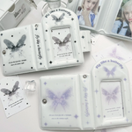 Enhance your Kpop collection with the Butterfly Mini Binder, featuring 1 spacious pocket for photocards and polaroids measuring 3 inches. Perfect for displaying your favorite cards from popular groups like Blackpink and Seventeen.