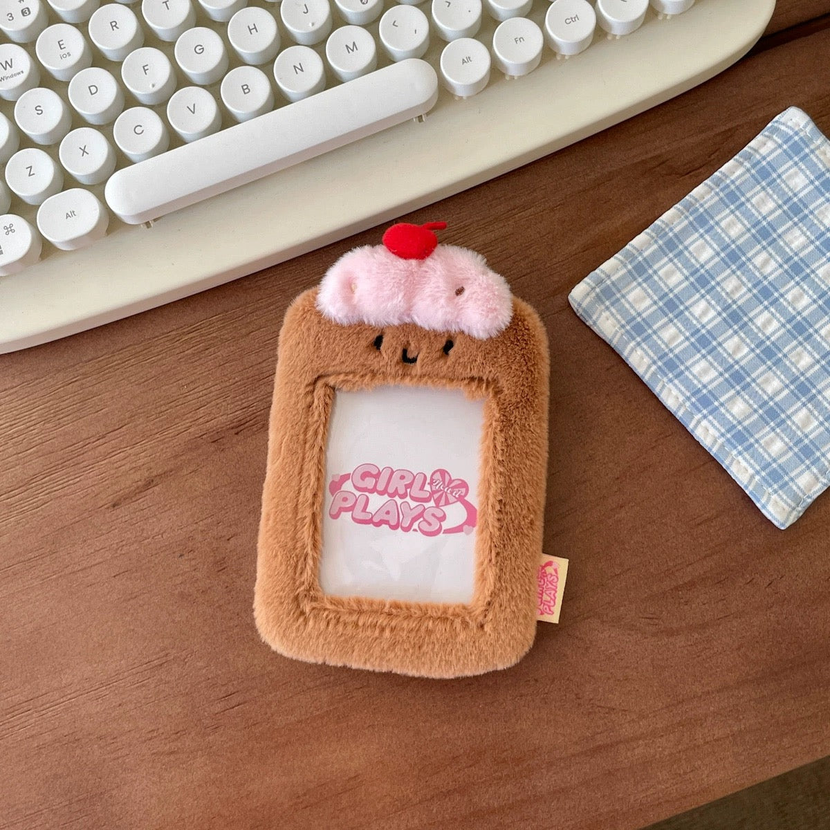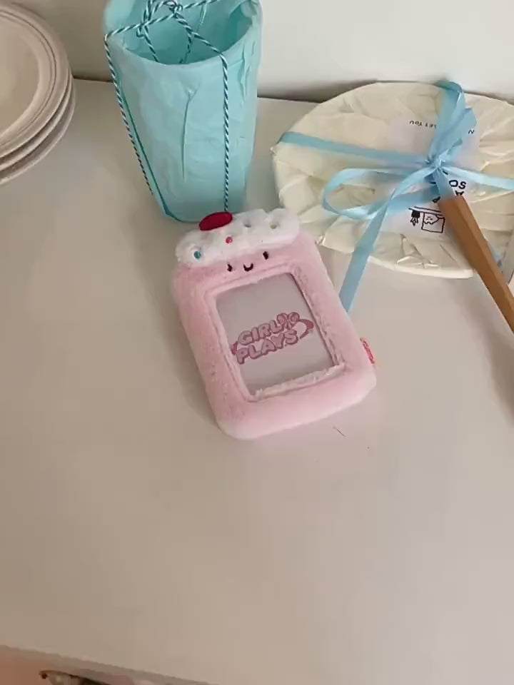 Cute Fluffy Plush Dessert Cake Kpop Photocard with KeyChain