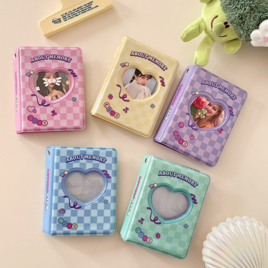 KPop 3 inch Mini Photo Album Collect Book | Hollow Heart Checkered binder multiple colors| k-pop photocards instax polaroids 1 pocket