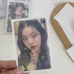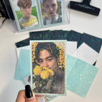 These colored sleeves are specifically designed to protect your Kpop photocard collection. Measuring at 3 inches, they come in black, white, and mint colors with a holographic heart design, made with laser PVC and acid-free materials. Available in packs of 50 or 100, these sleeves will preserve your cards for years to come.