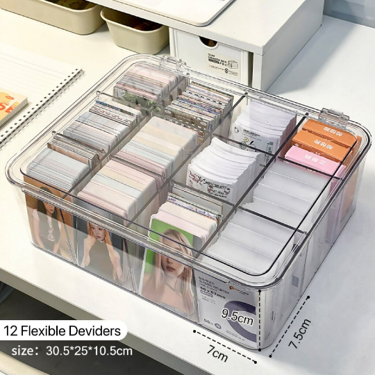Large 12 deviders Kpop Photocard Storage Case 8 Deviders PC holder | 3 inch Transparent Clear Acrylic Box | for BTS Seventeen Stary Kids for big collection